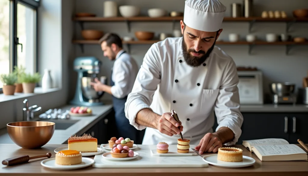 Le travail du sucre est un autre domaine où excellence technique et créativité se rencontrent. La réalisation de caramel, de nougatine ou de sucre tiré demande une compréhension approfondie des réactions chimiques et une main sûre. Ces éléments apportent non seulement du croquant et de la brillance aux desserts, mais permettent aussi de créer des décors spectaculaires.